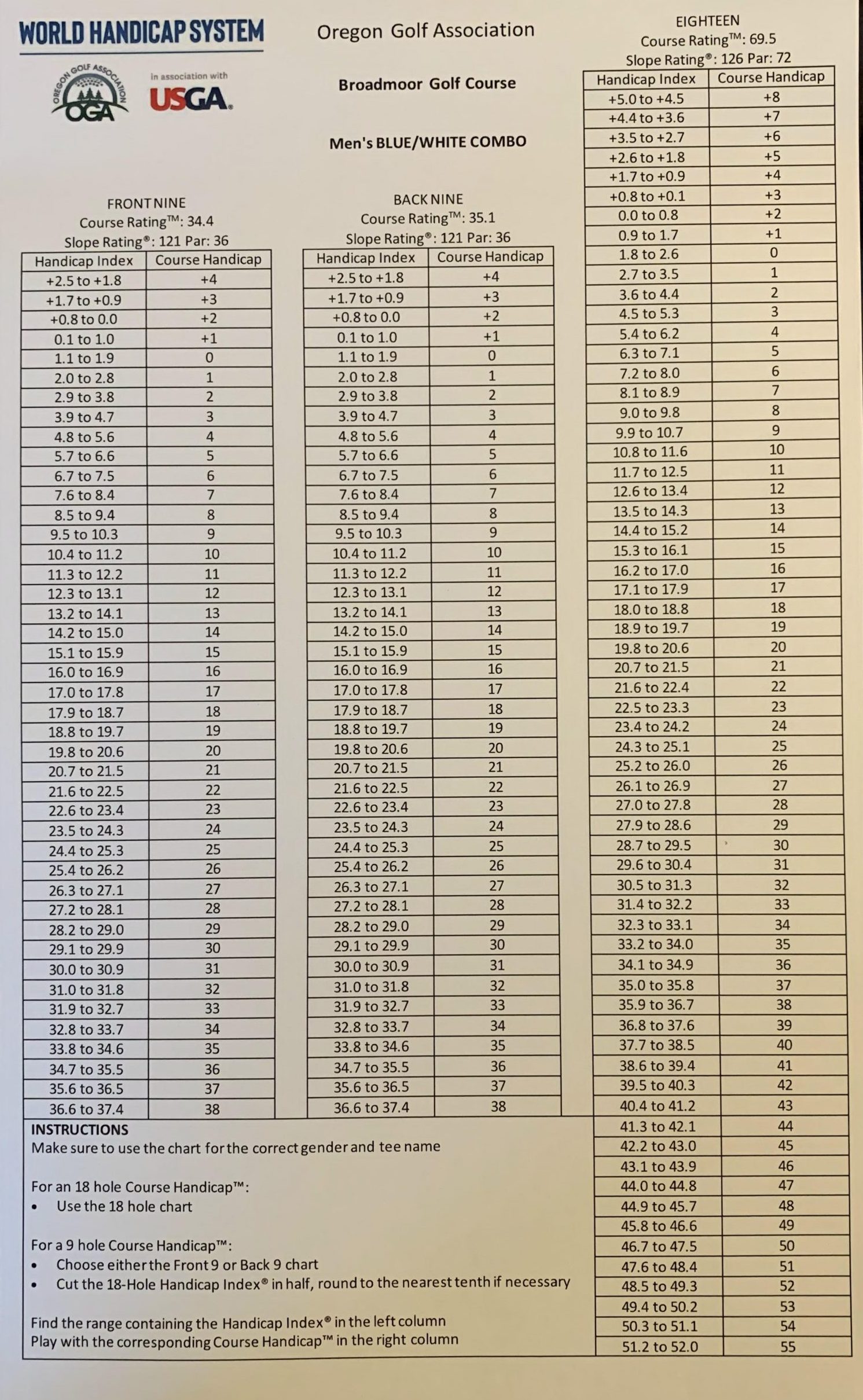 Course Handicap Conversion Charts – Mens Tees
